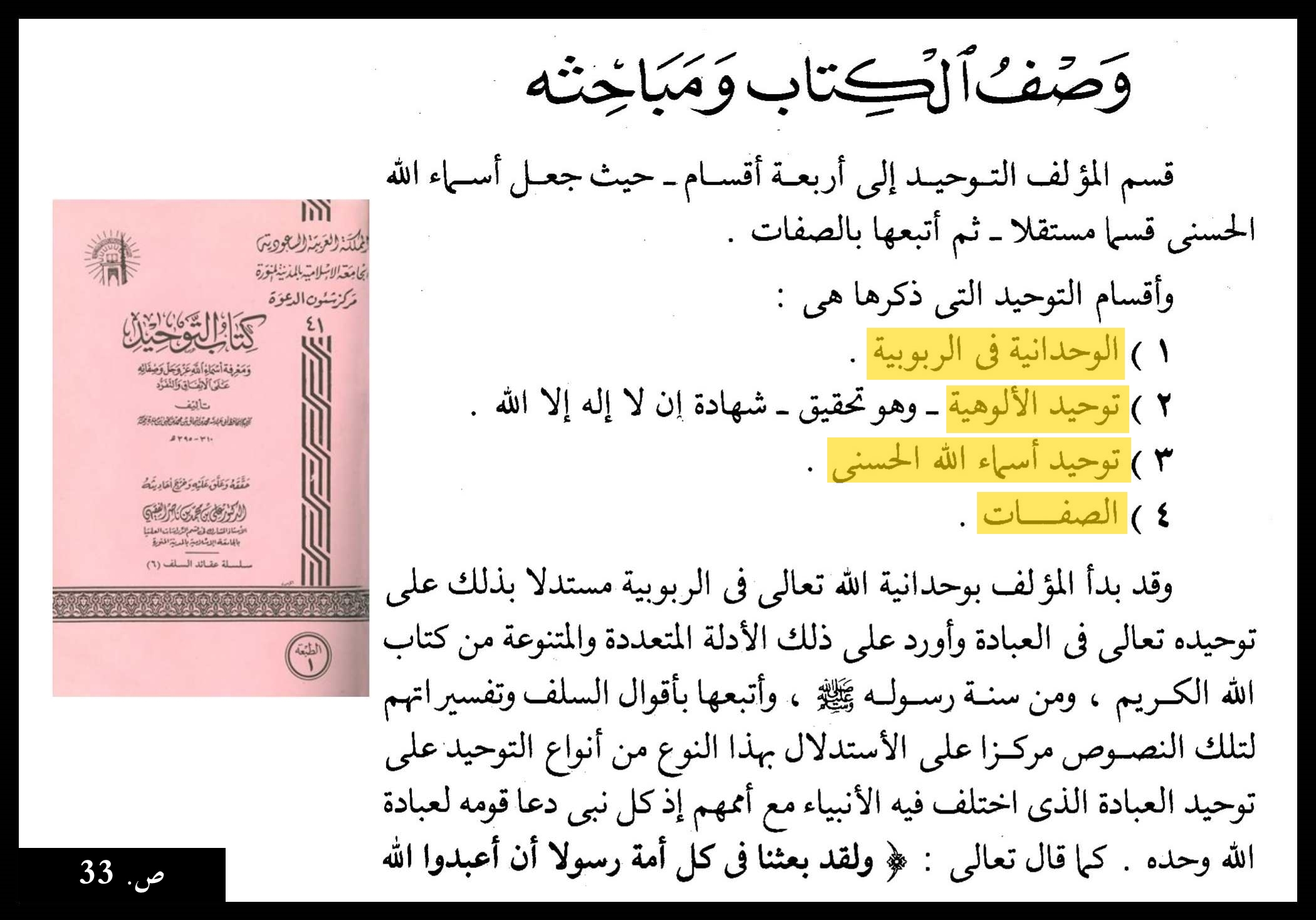 Abu Bakr Muhammad b. Ishaq b. Khuzaima (d. 311AH / 923) wrote التوحيد وإثبات صفات الرب عز وجل (Tawheed and Affirming The Attributes of The Lord), focusing on Tawheed al-Asmaa was-Sifaat in its first half and refuting those who deny some of Allah’s attributes like the Jahmiyya and the Mu’tazila.